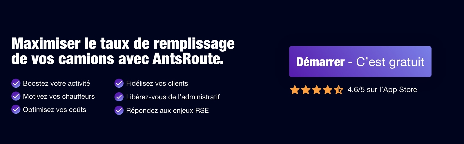 Optimiser le taux de remplissage des camions offre des avantages considérables : réduction des coûts, efficacité opérationnelle accrue et diminution de l’empreinte environnementale. En adoptant des outils performants, comme le logiciel d’optimisation de tournées AntsRoute, vous pourrez atteindre ces objectifs facilement. Planifiez des itinéraires intelligents, maximisez l’utilisation de vos ressources et boostez votre rentabilité. Testez gratuitement AntsRoute dès aujourd’hui et découvrez comment transformer votre logistique en un véritable atout compétitif !