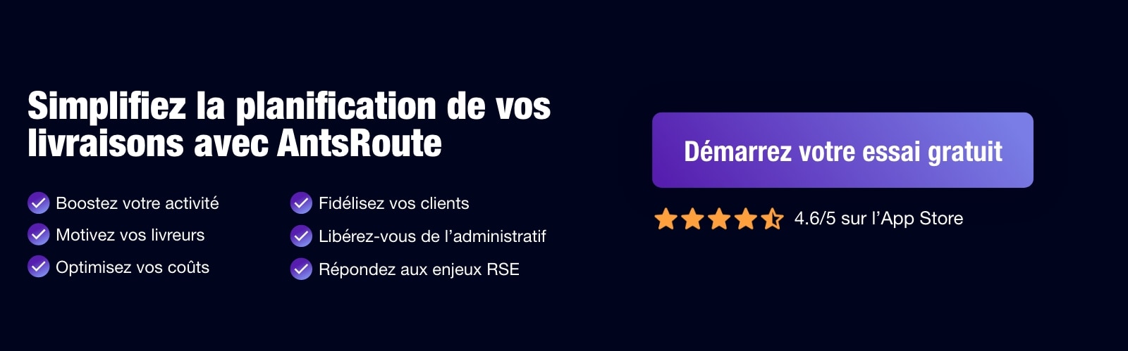 Vous souhaitez tester une solution vraiment efficace pour améliorer vos performances sur le dernier kilomètre ? Inscrivez-vous pour essayer gratuitement AntsRoute pendant 7 jours, sans engagement ni numéro de carte bleue.