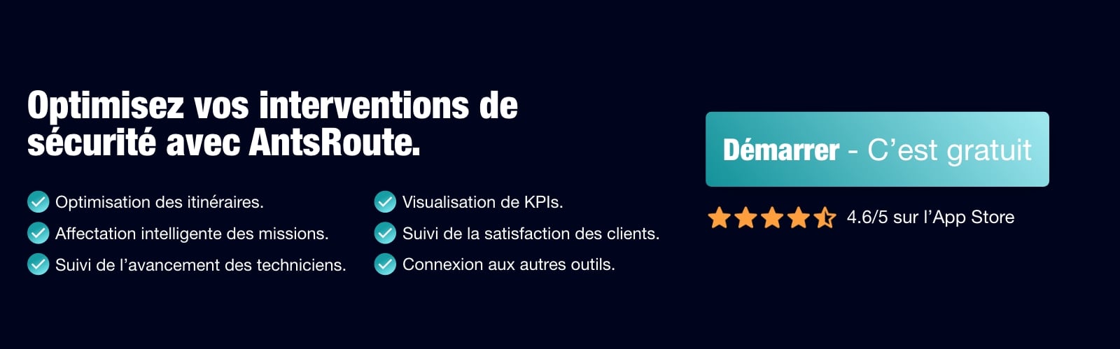 Oui. AntsRoute propose des intégrations avec de nombreux CRM et ERP, ainsi qu’une API pour connecter facilement l’outil à vos logiciels spécifiques au secteur de la sécurité.