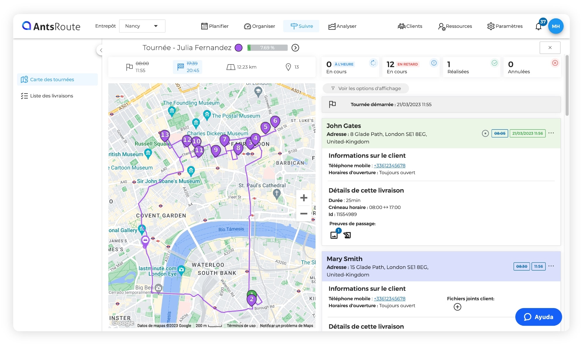 L’interface du logiciel d’optimisation de tournées AntsRoute.