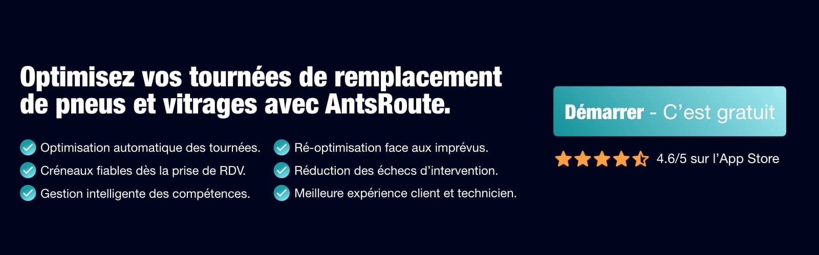 Le remplacement de pneus et de vitrages à domicile n’est plus une simple alternative au garage traditionnel : c’est devenu le standard d’une clientèle exigeante qui achète avant tout de la sérénité et du temps. En adoptant AntsRoute, vous ne vous contentez pas de réduire vos kilomètres : vous redonnez de l’air à vos techniciens, sécurisez vos marges et offrez une expérience client digne des géants du e-commerce.