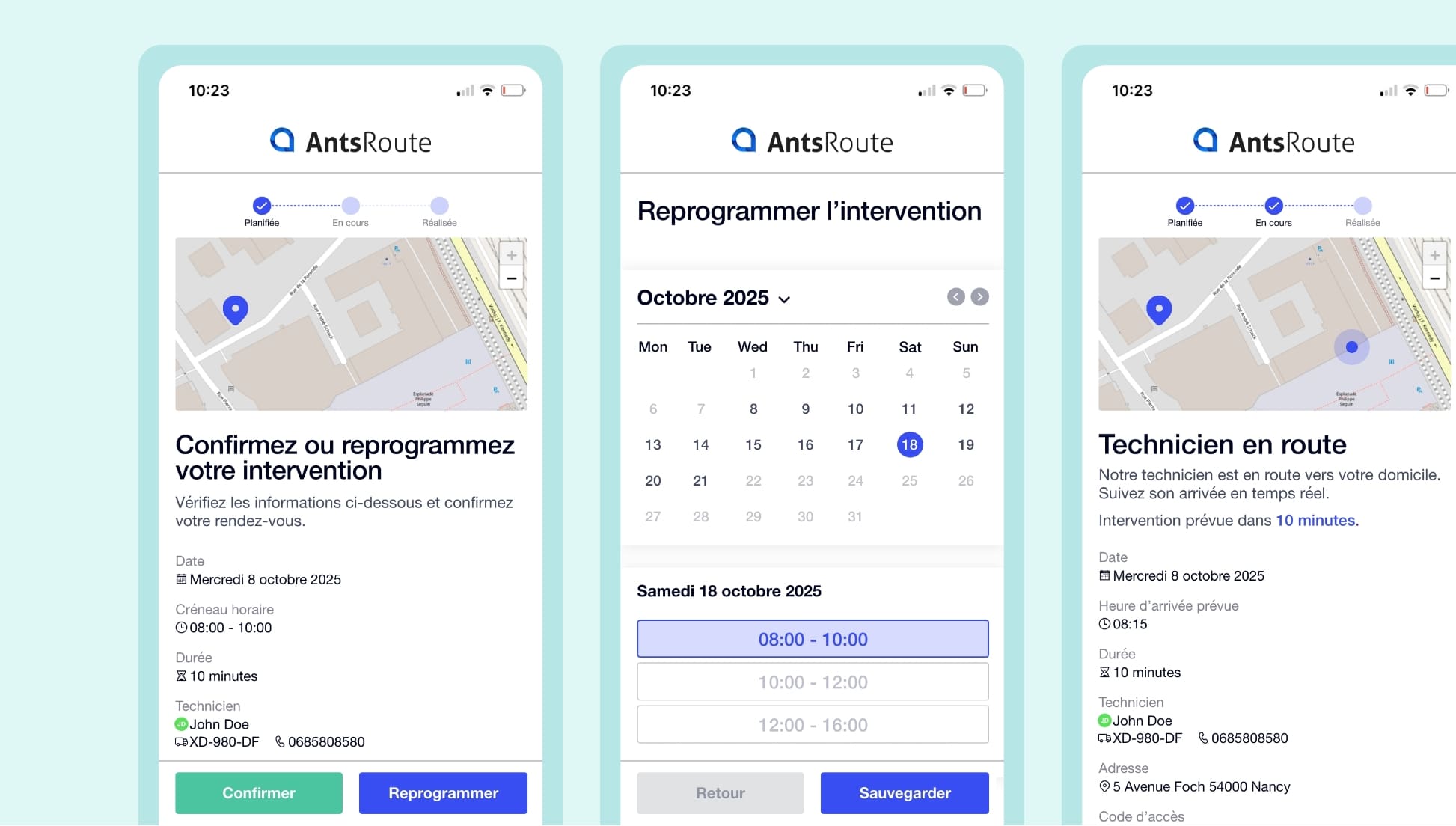 Un client absent = une intervention perdue. Et un technicien qui s’est déplacé pour rien. AntsRoute les sécurise :