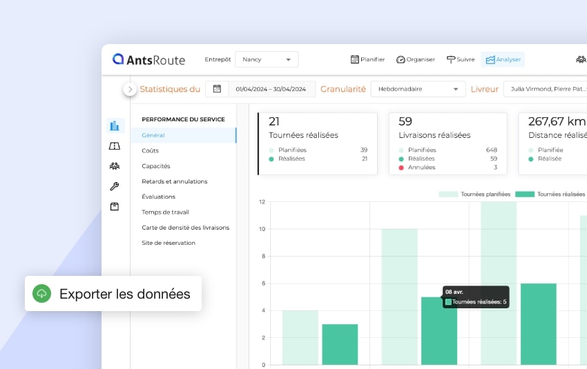 L'outil AntsRoute permet de suivre plus de 25 KPI logistiques pour gérer efficacement votre entreprise et améliorer votre résultat d’exploitation. ...