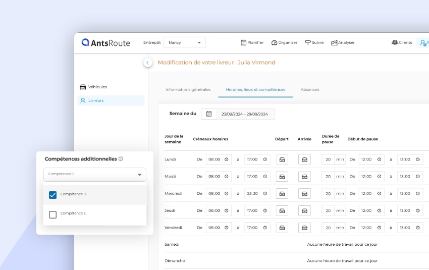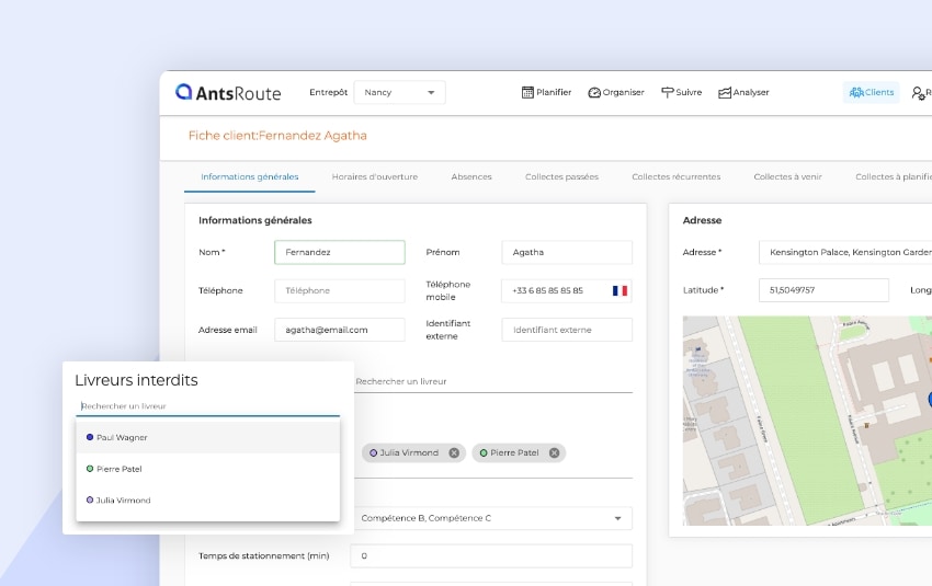 Les dernières nouveautés du logiciel AntsRoute : assigner des compétences aux clients, déterminer des agents interdits chez un client, etc. ...