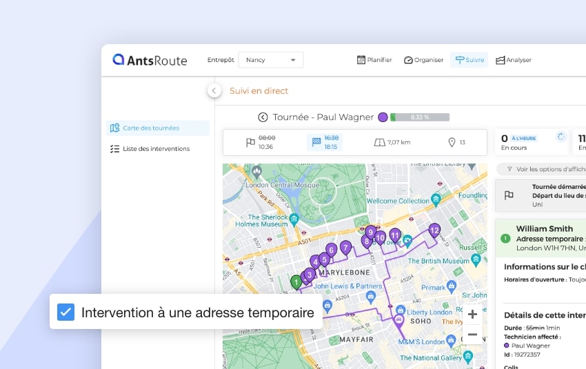 Les dernières nouveautés du logiciel AntsRoute : planifier une intervention à une adresse temporaire, ajouter des notes de début et ...
