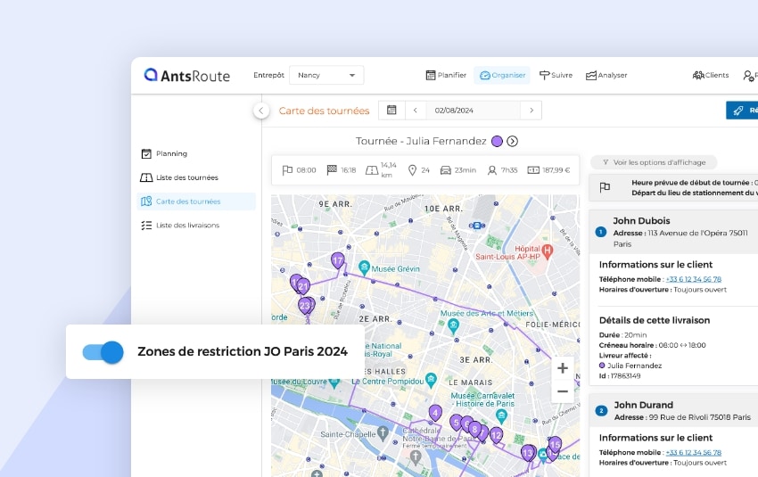 Les dernières nouveautés du logiciel AntsRoute : nouvelle condition pour calculer le prix des interventions, exclusion des zones de restriction ...