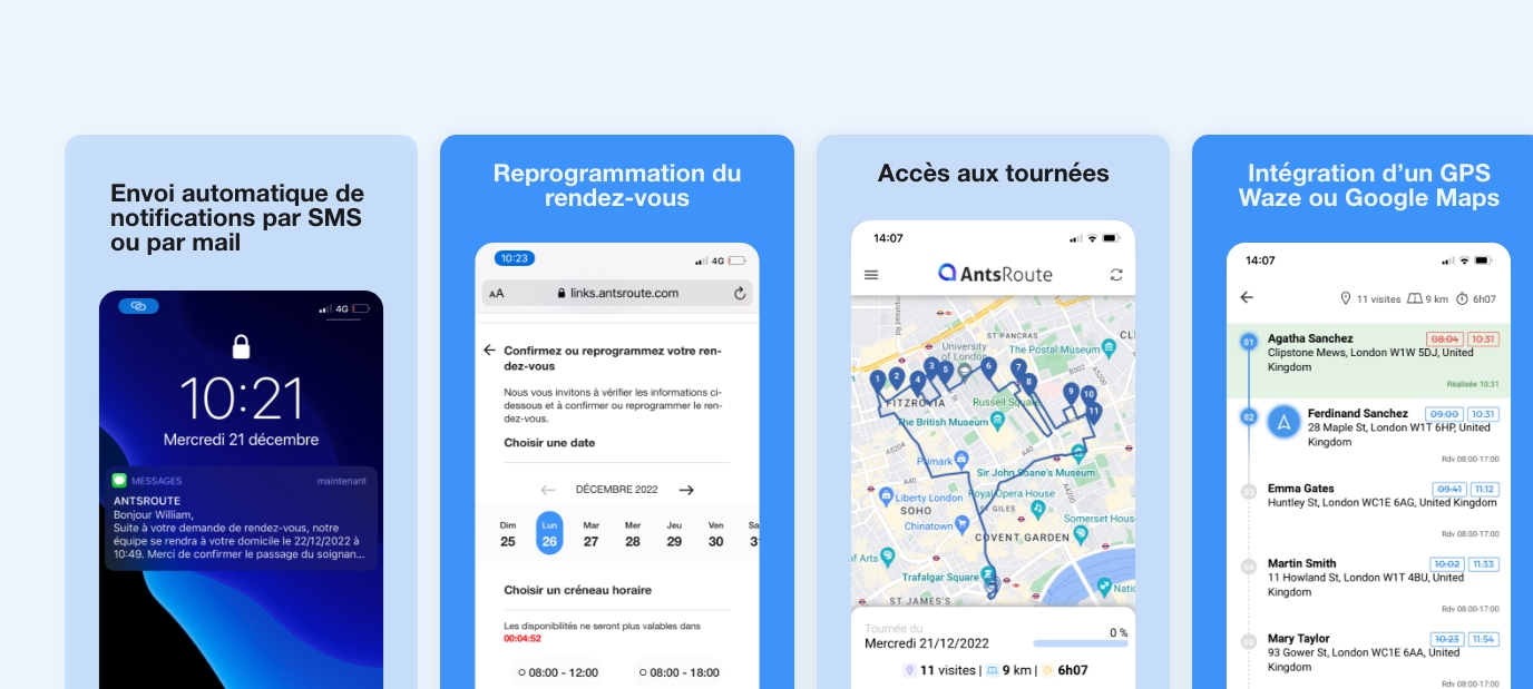 Le logiciel d’optimisation de tournées AntsRoute destiné aux professionnels de santé.