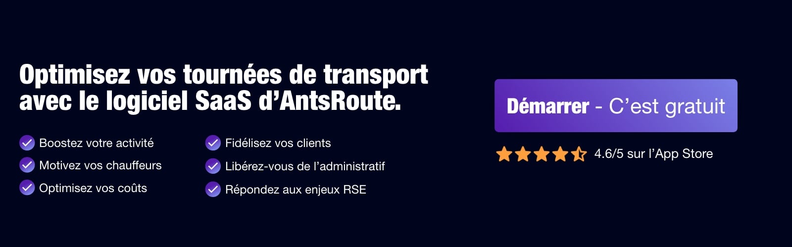 Chez AntsRoute, nous proposons une solution TMS entreprise en mode SaaS, à la fois accessible et évolutive. Nous attachons également une grande importance à vous former et à répondre à vos questions, pour faire de notre logiciel une solution directement applicable dans votre entreprise. Vous pouvez demander une démonstration à tout moment, pour vous assurer qu’il répond à vos besoins.