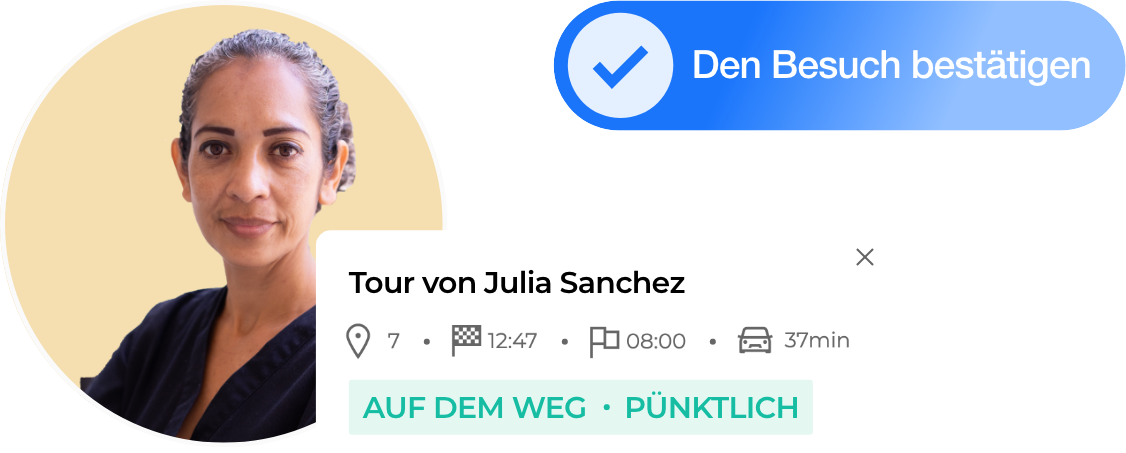- Erinnerung am Tag vor dem Termin an den Besuch der Pflegekraft mit der voraussichtlichen Ankunftszeit.