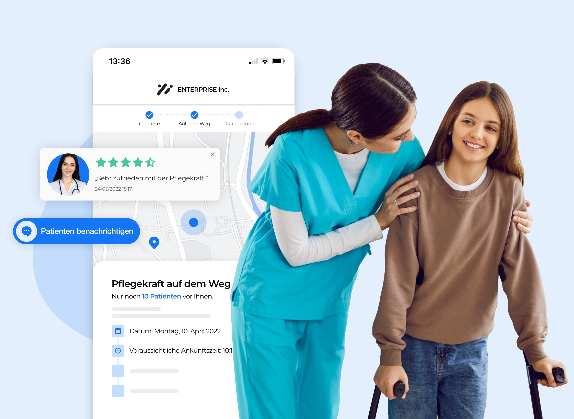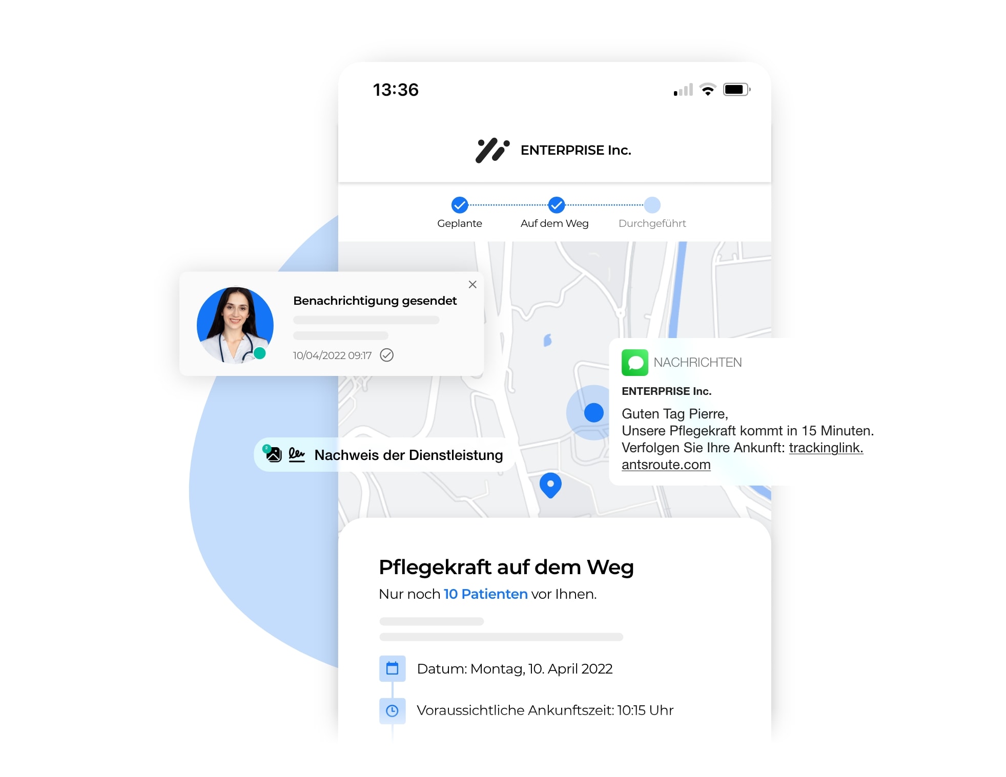 Bieten Sie Ihren Patienten die Möglichkeit an, die Ankunft der Pflegekraft in Echtzeit zu verfolgen