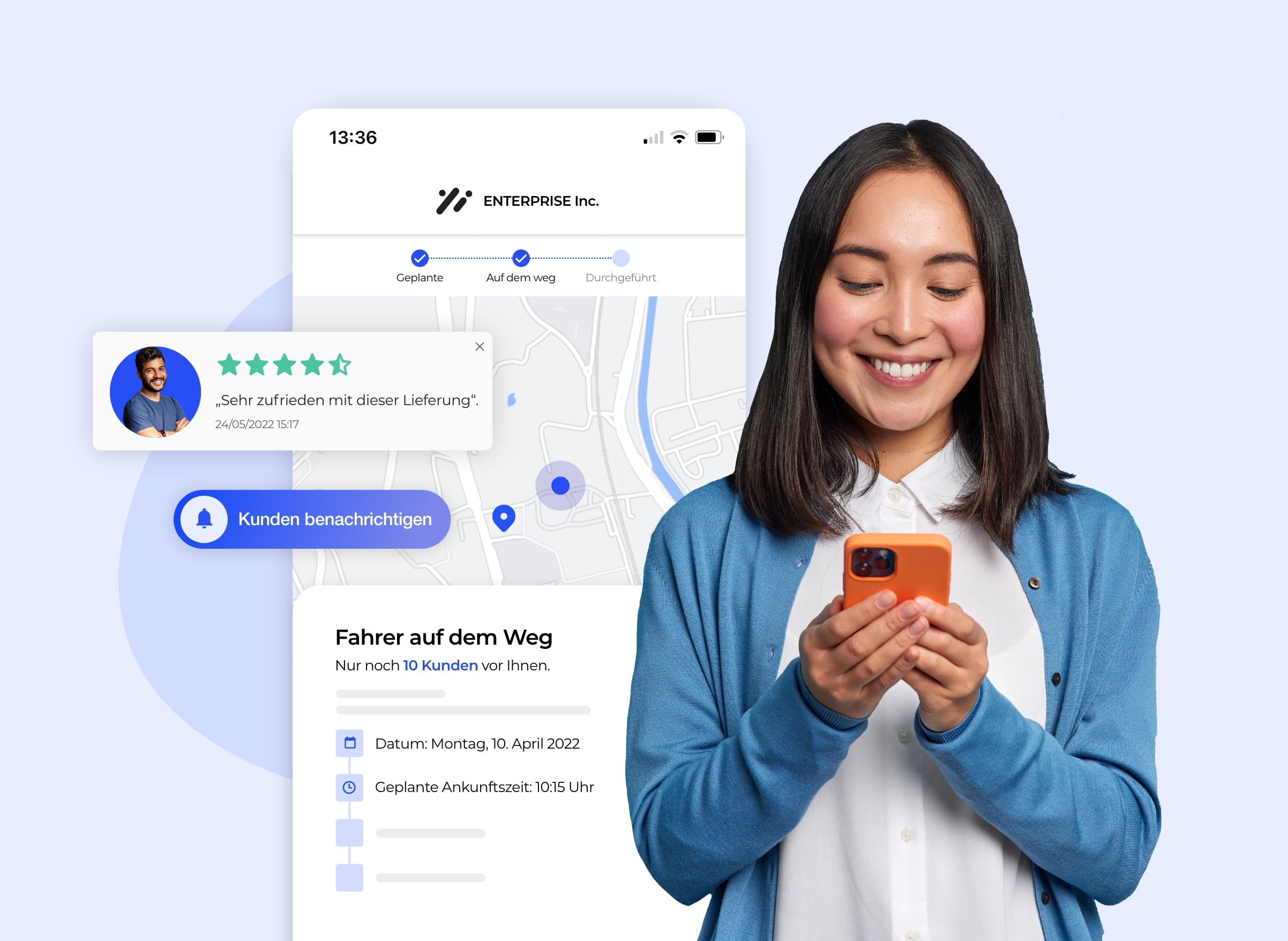 Was kann für Ihren Kunden ärgerlicher sein, als den ganzen Tag zu Hause bleiben zu müssen, um Pakete oder Möbel in Empfang zu nehmen, die schließlich erst um 17 Uhr ankommen? Diese unangenehme Situation vermeiden Sie auf einfache Art und Weise, indem Sie Ihren Kunden die richtigen Informationen zum richtigen Zeitpunkt mitteilen.