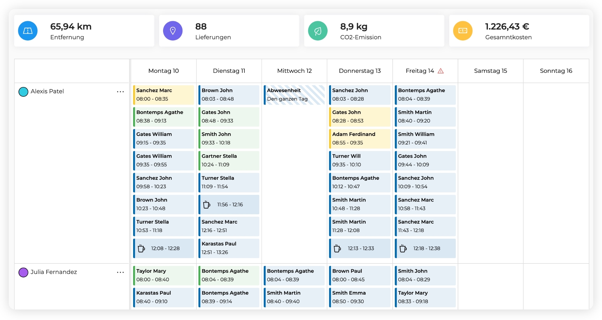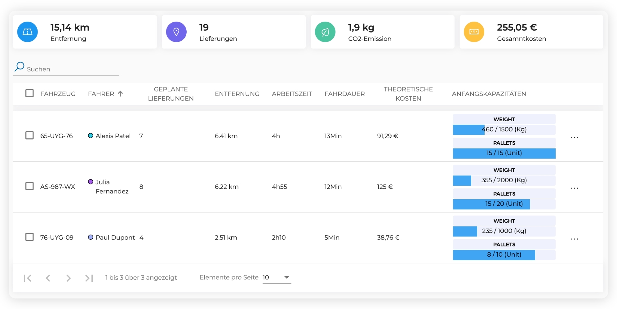 - Eine Optimierung des Auslastungsgrades der Fahrzeuge.