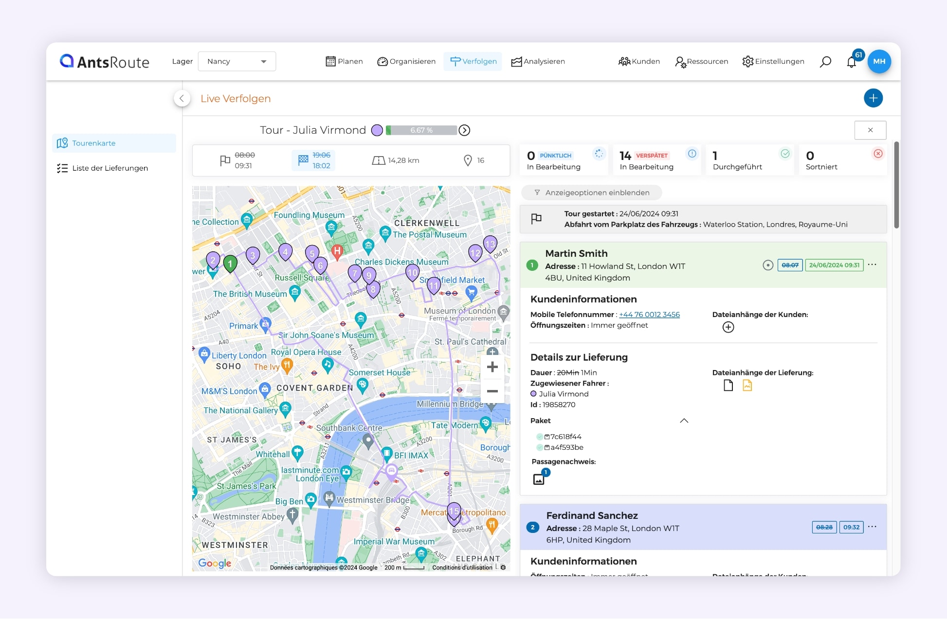 AntsRoute-Link, mit dem der Kunde seine Lieferung umplanen und live verfolgen kann.