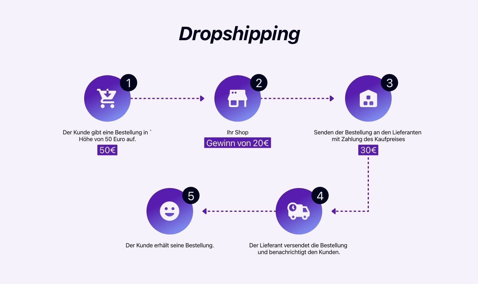 Diese Lösung erfordert zwar eine geringe Anfangsinvestition, ist aber auch sehr riskant. Da das Produkt nie durch Ihre Hände geht, haben Sie weder Einfluss auf die Auftragsabwicklung noch auf die Kundenzufriedenheit.
