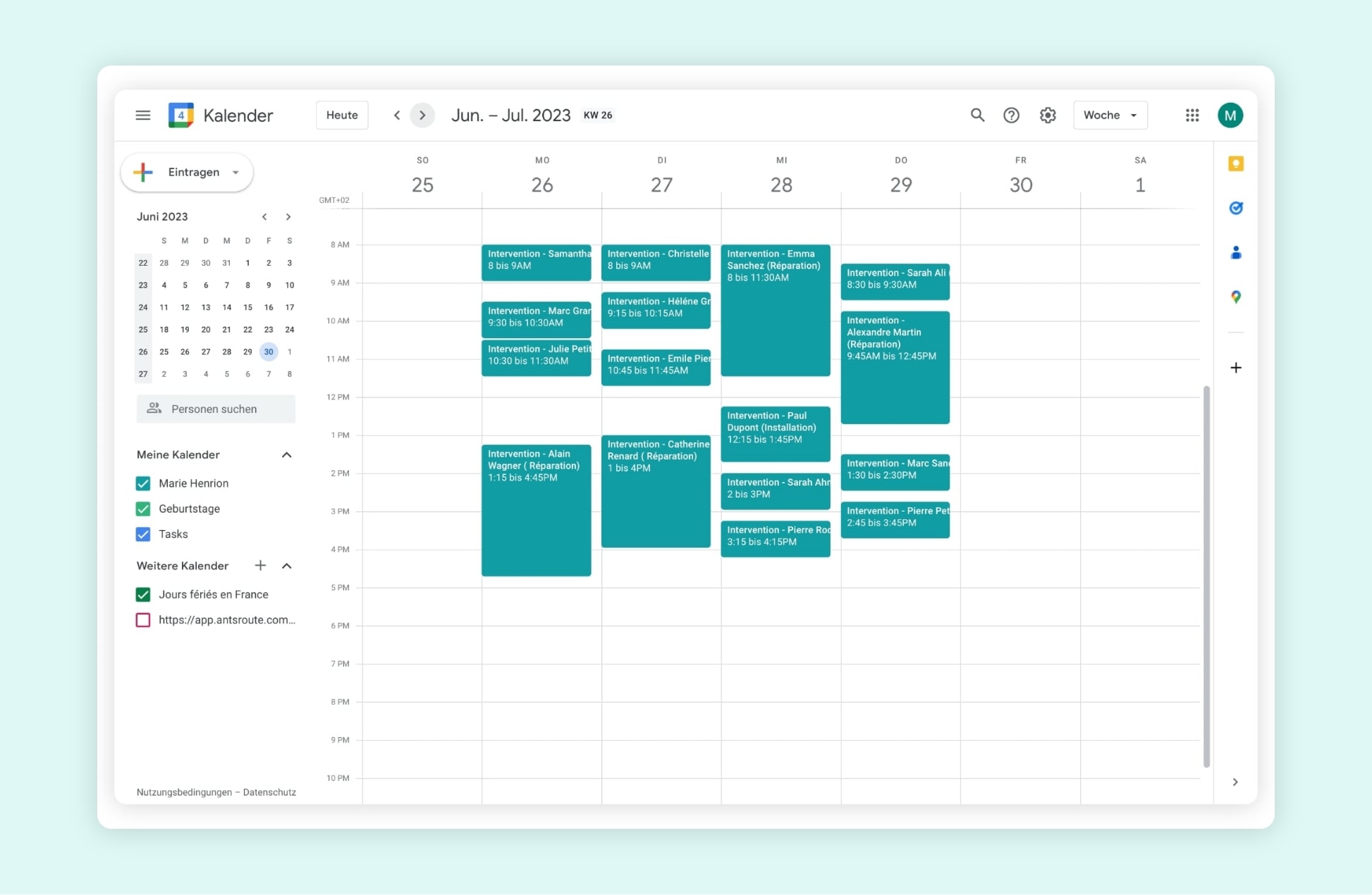 Da sie in Echtzeit synchronisiert werden, ergänzen diese Online-Kalender per Definition die anderen Tools der von Ihrem Unternehmen gewählten IT-Suite (Google Workspace, Microsoft 365 usw.). Sie ermöglichen es also, jedem Termin auf einfache Weise Notizen oder Pläne zuzuordnen.