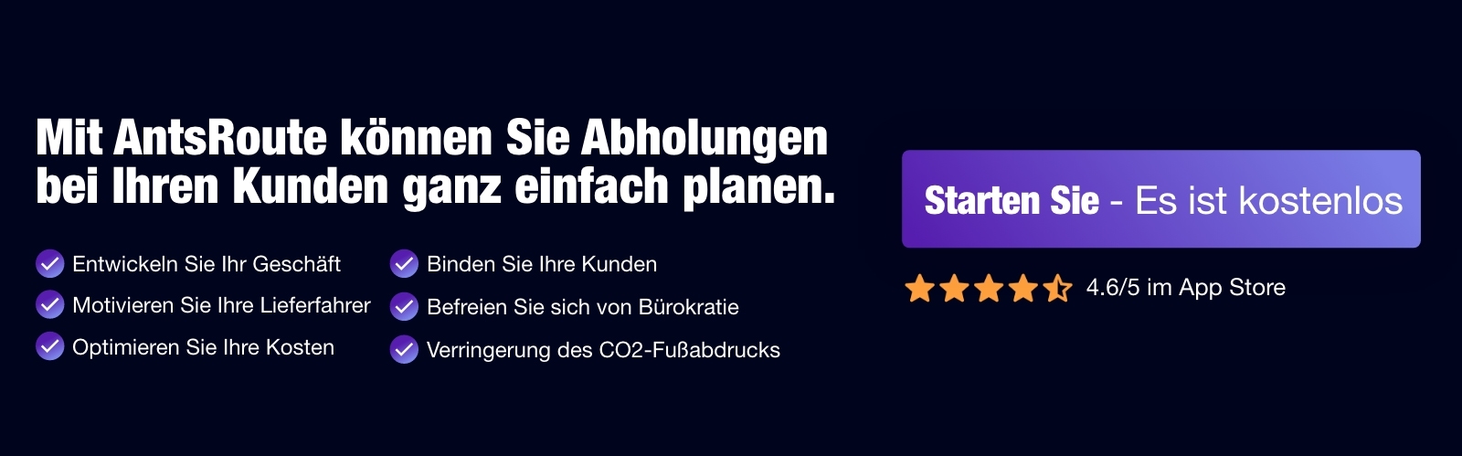 Testen Sie AntsRoute 7 Tage lang kostenlos, um Ihre Retouren zu optimieren und Ihre Wettbewerbsfähigkeit zu stärken!
