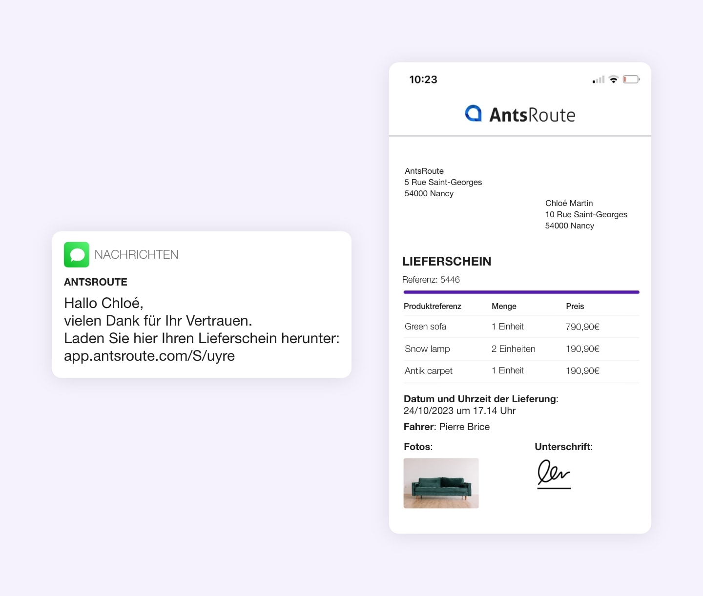 Mit der mobilen Applikation AntsRoute können die Fahrer auch direkt die elektronische Unterschrift des Kunden sowie ein Foto hochladen, um den reibungslosen Ablauf der Lieferung zu belegen.