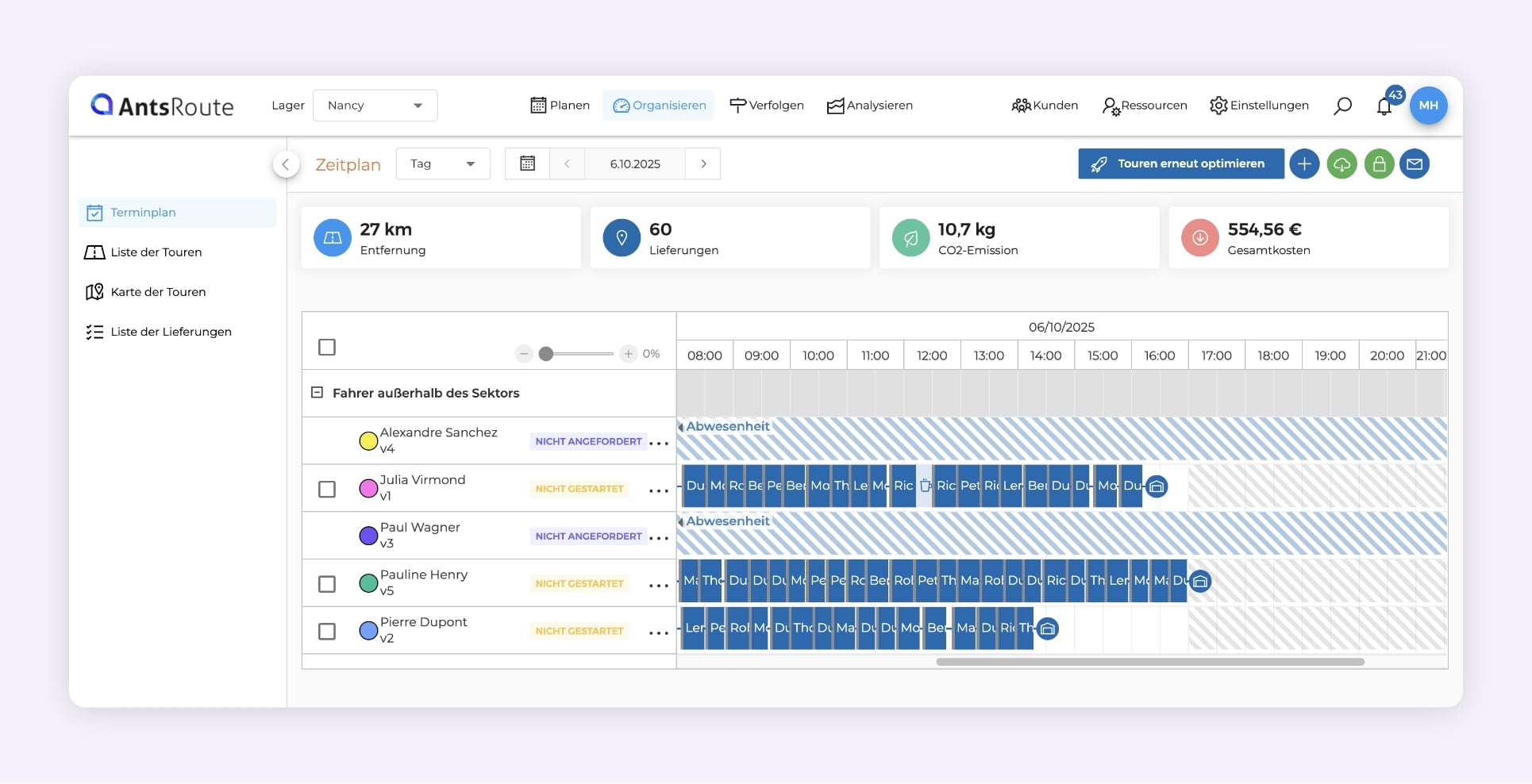 Der Lieferplan auf AntsRoute.