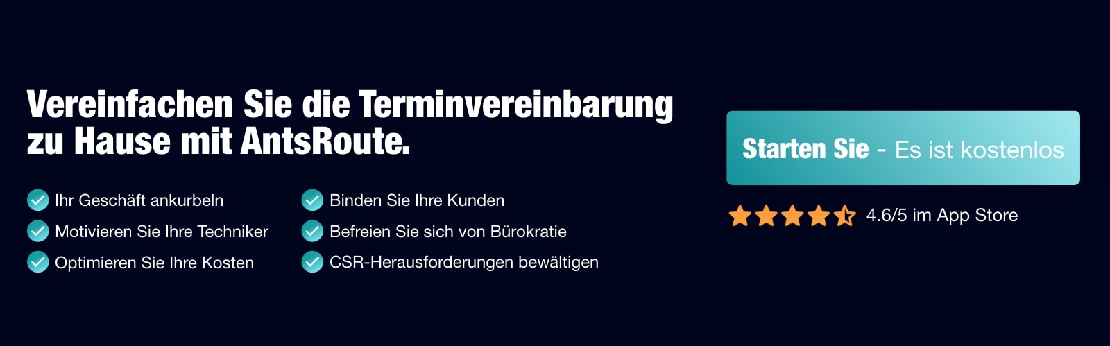 Der Einsatz einer Terminplanungssoftware oder Software zur Terminvereinbarung ist der Schlüssel zur Bewältigung der heutigen logistischen Herausforderungen. Das Tool vereinfacht die Planung von Einsätzen und optimiert die Routen. Dadurch werden die Produktivität der Teams und die Zufriedenheit der Kunden gesteigert.