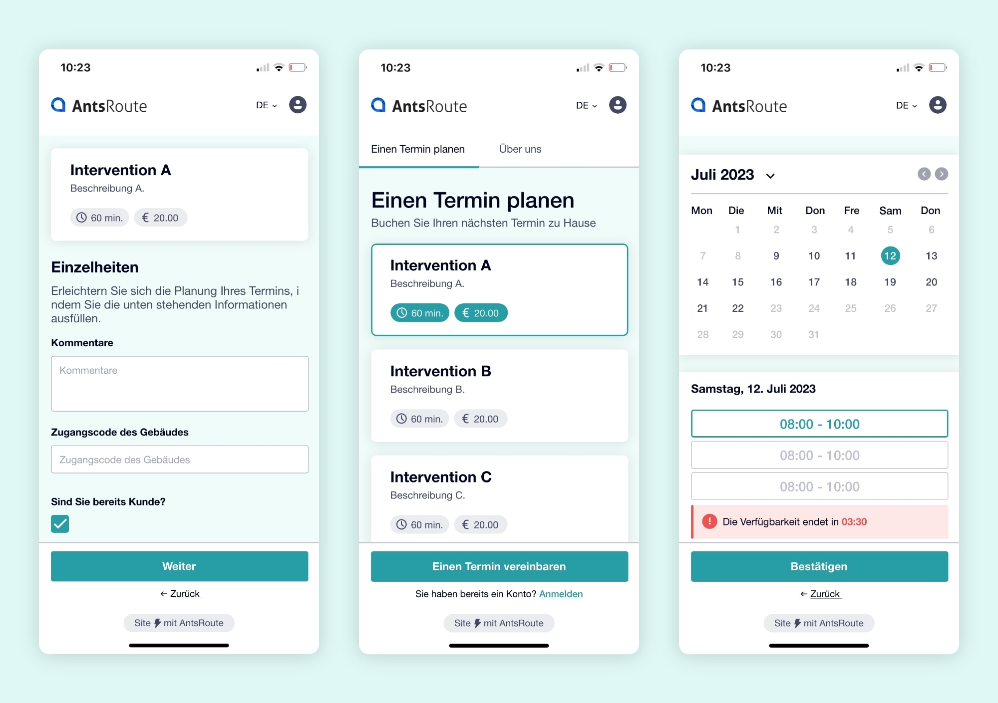 Die direkte Terminvereinbarung durch einen Kunden bei AntsRoute.