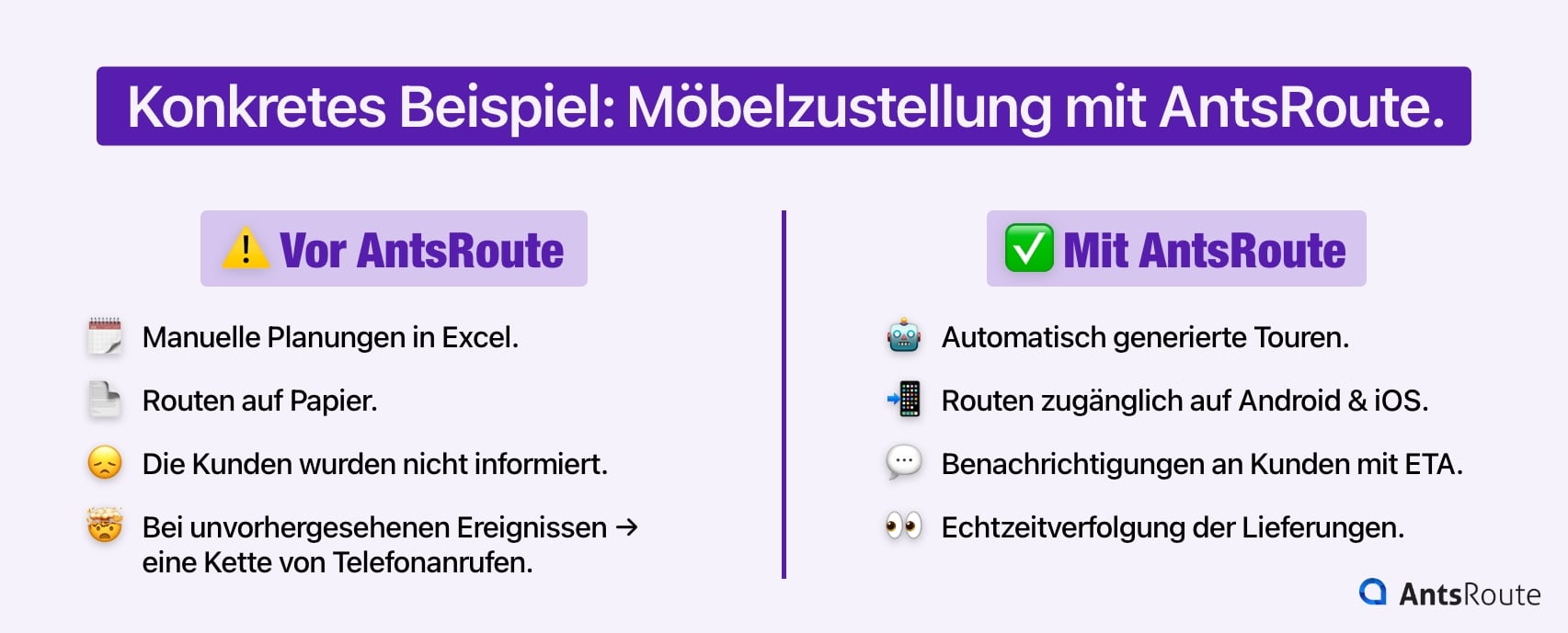 Konkretes Beispiel: Möbellieferung mit AntsRoute.