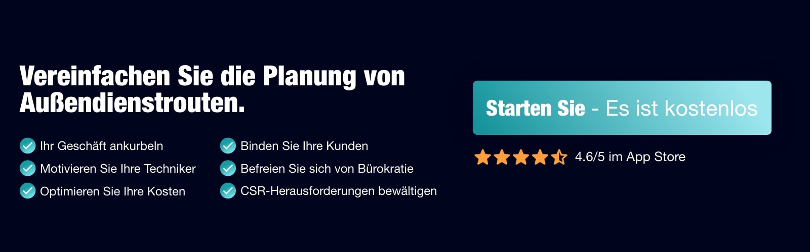 Um Ihre Fahrten zu optimieren und den CO2-Fußabdruck von Einsatztouren zu reduzieren, bieten wir Ihnen an, unsere App 7 Tage lang kostenlos zu testen. Klicken Sie hier, um sich anzumelden!