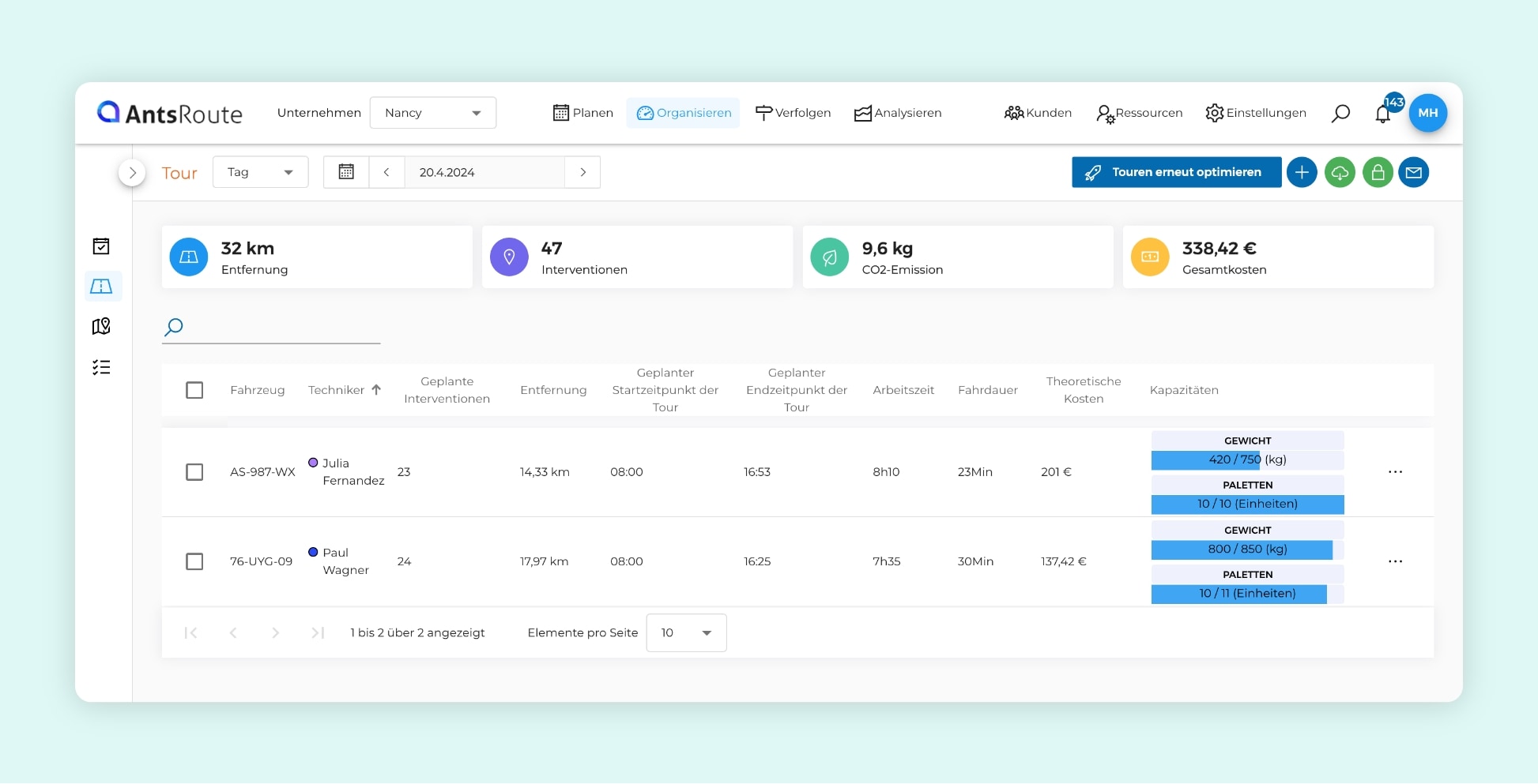 Um den CO2-Ausstoß noch schneller zu reduzieren, können Sie die Software sogar anweisen, die Einsatztouren vorrangig den umweltfreundlichsten Fahrzeugen zuzuweisen.