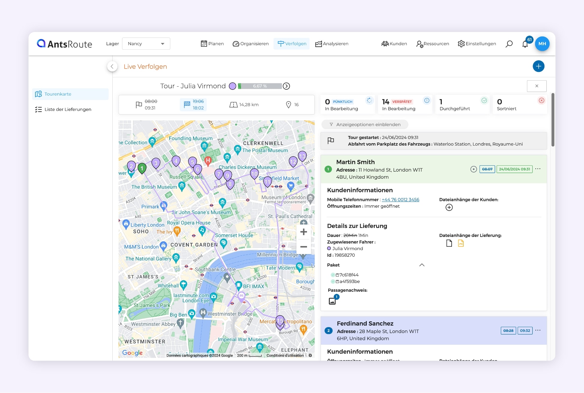 Das System der von AntsRoute aus gesendeten Links ermöglicht es, Endkunden über ihre Bestellungen zu informieren.
