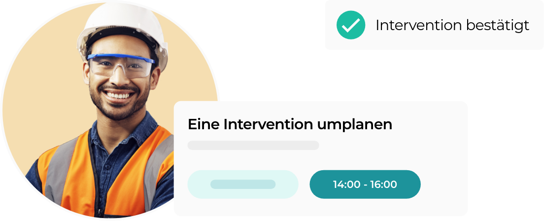 Ein Online-Buchungssystem, 24/7 für den Kunden erreichbar, mit dem dieser selbst das Datum und Zeitfenster der Intervention auswählen kann.