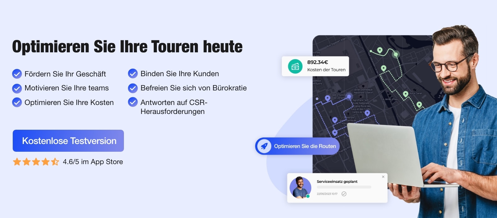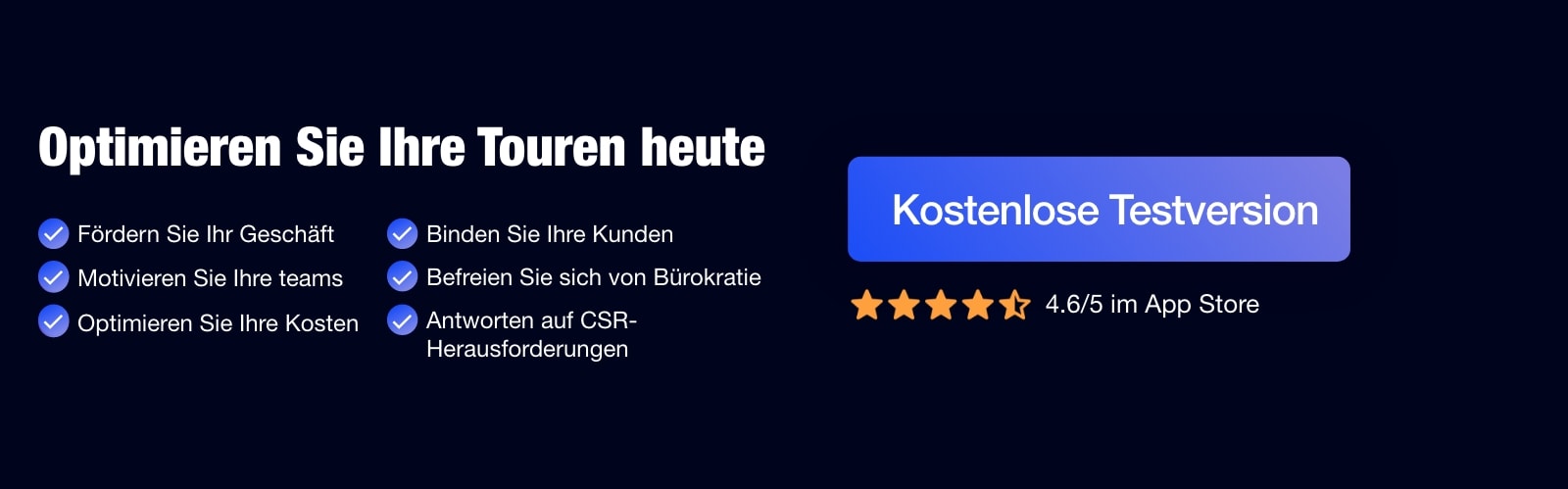 Welche ist nun die beste Software für die Optimierung Ihrer Touren? Tatsächlich wird es das Tool sein, das Ihre individuellen alltäglichen Einschränkungen auf zuverlässige und einfache Art und Weise bei der Planung integrieren wird. Und dazu eine professionelle Lösung, die sich auch an die Entwicklung Ihres Geschäfts im Laufe der Zeit anpassen kann.