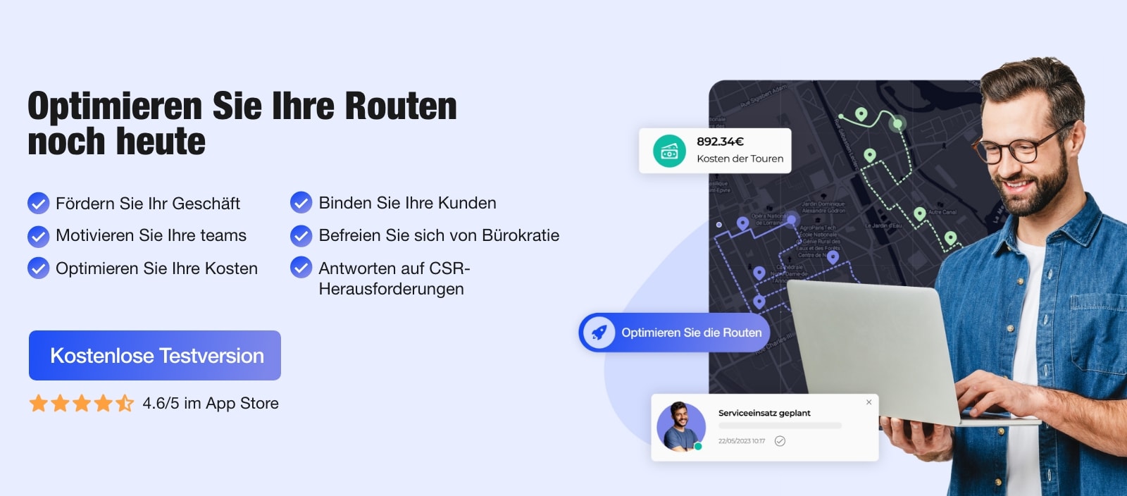 Mit unserer Lösung für die Tourenplanung optimieren Sie Ihre Zeit, indem Sie die oft undankbare und zeitraubende Phase der Erstellung der Touren an Algorithmen delegieren. Die daraus resultierende Zeitersparnis ist für Ihre Organisation von entscheidender Bedeutung und lässt sich in Stunden, in manchen Berufen sogar in halben Tagen berechnen.