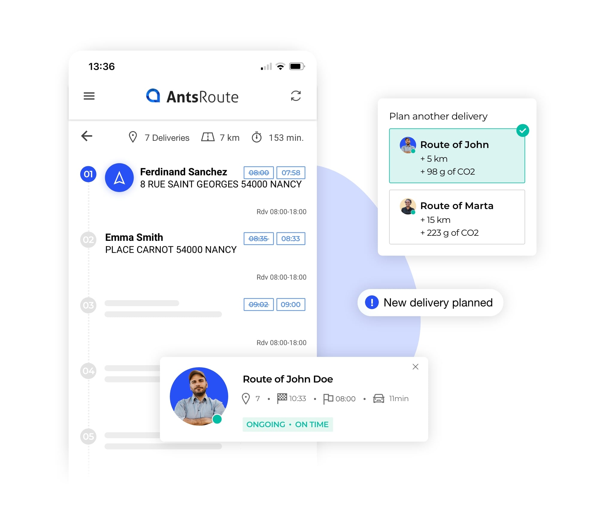 With AntsRoute, you can avoid all these stressful situations. You can generate balanced routes based on business constraints and team working hours. Using the mobile application makes it easy to navigate and gives you access to all the documents you need.