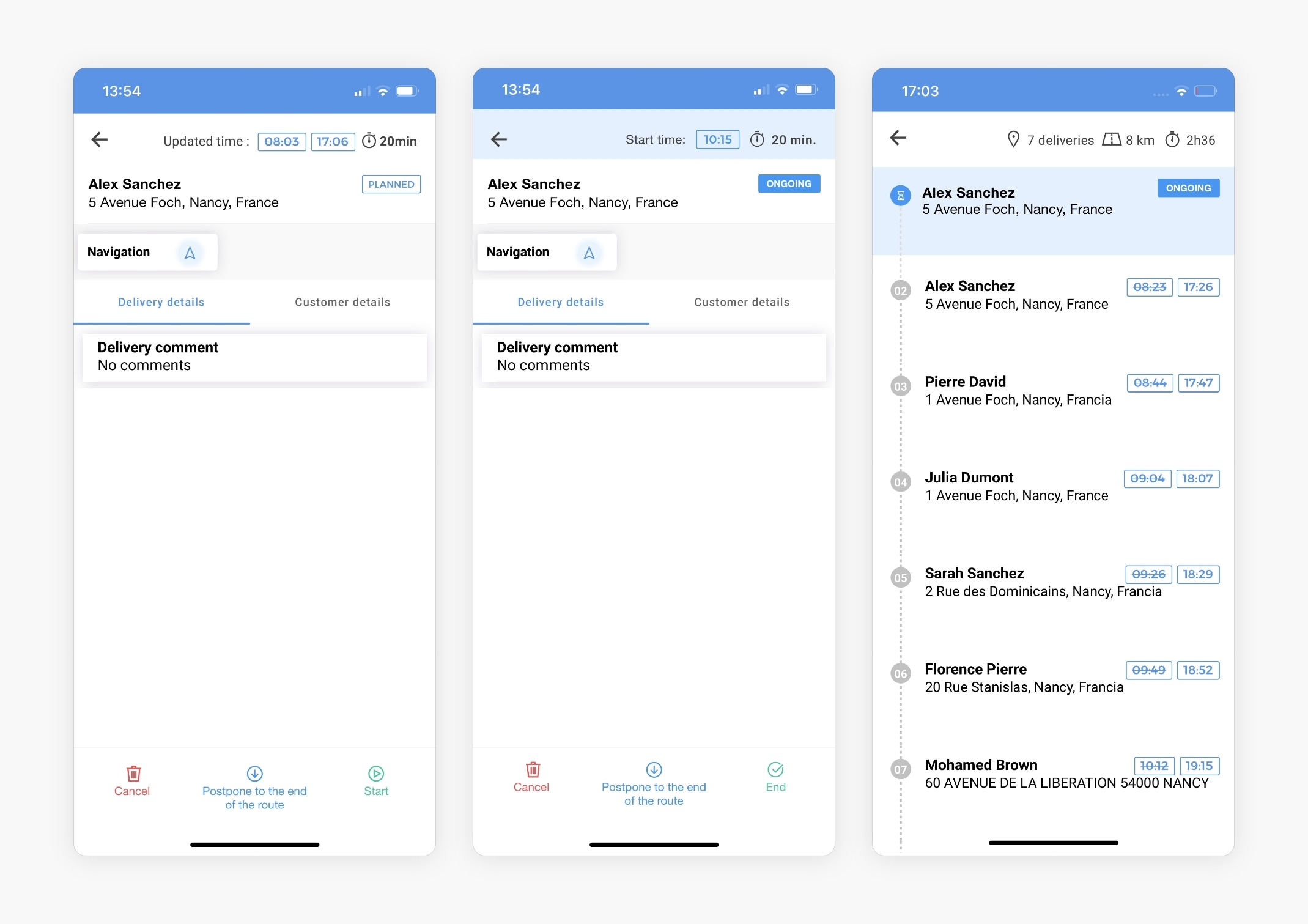• If you have underestimated this time, you can readjust it to better respect the times when you visit your customers.