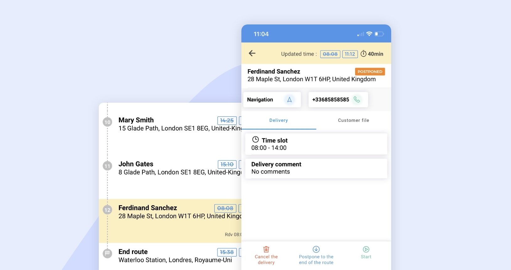 A customer is absent? No worries… Your field workers can now postpone stops at the end of the route. So far, drivers who found the customer’s door closed could only cancel the task and the dispatcher had to reschedule it on another date from the web interface. Now, if the driver wants to return to the address of the absent customer after completing the other tasks or deliveries, he can simply move the stop to the end of the route.