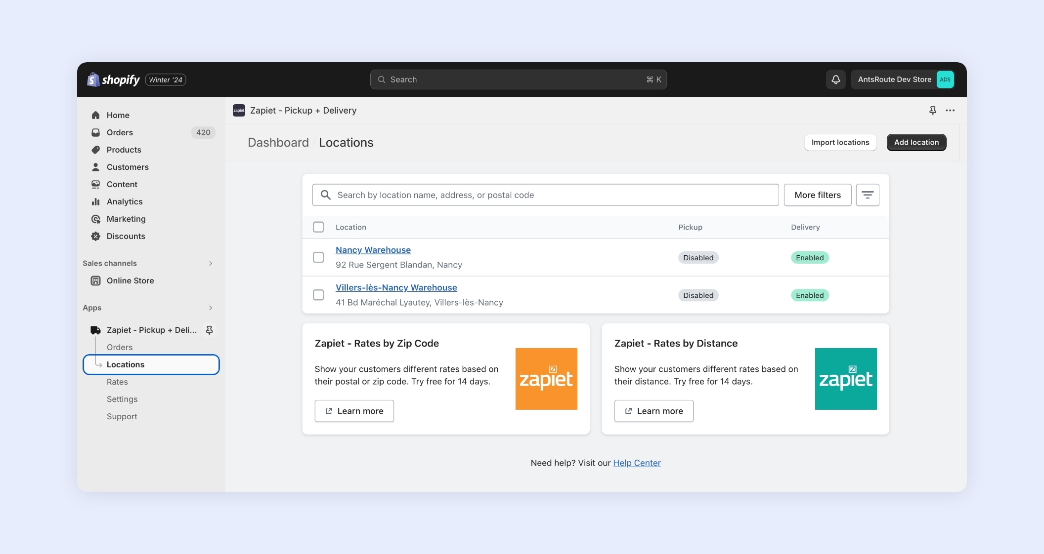 To find out more about integrating AntsRoute with Zapiet – Pickup + Delivery for Shopify, please read our support article. From this article, you can access step-by-step guides on how to set up this integration. If you need any help, don’t hesitate to contact our support team by email at [email protected]