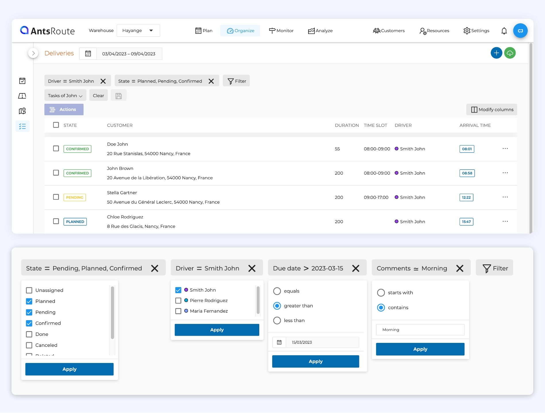 If you use AntsRoute every day, your tables must contain a lot of data about your work orders or deliveries. It’s not always easy to find the information you need? That’s why AntsRoute offers filters to allow you to display only the necessary information.