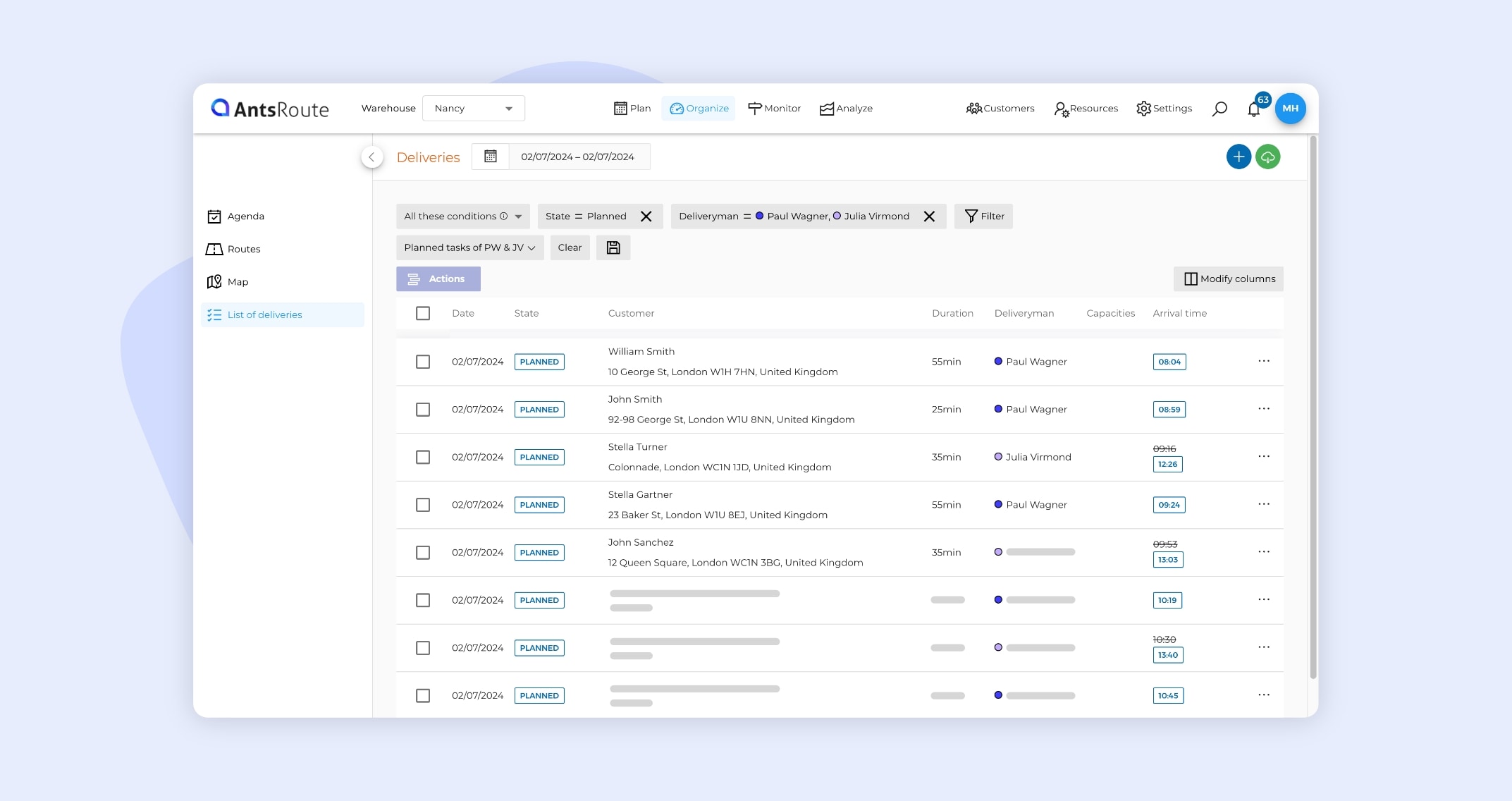If you use AntsRoute every day, your tables must contain a lot of data about your work orders or deliveries. It’s not always easy to find the information you need? That’s why AntsRoute offers filters to allow you to display only the necessary information.