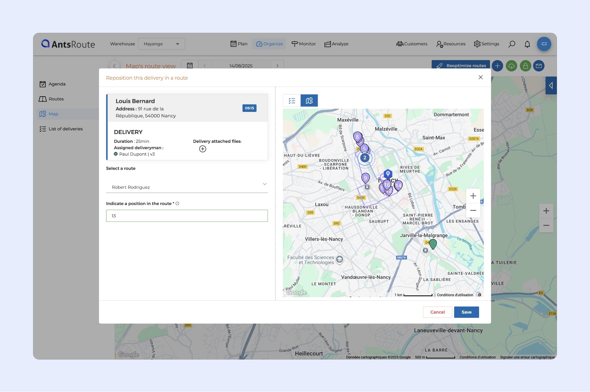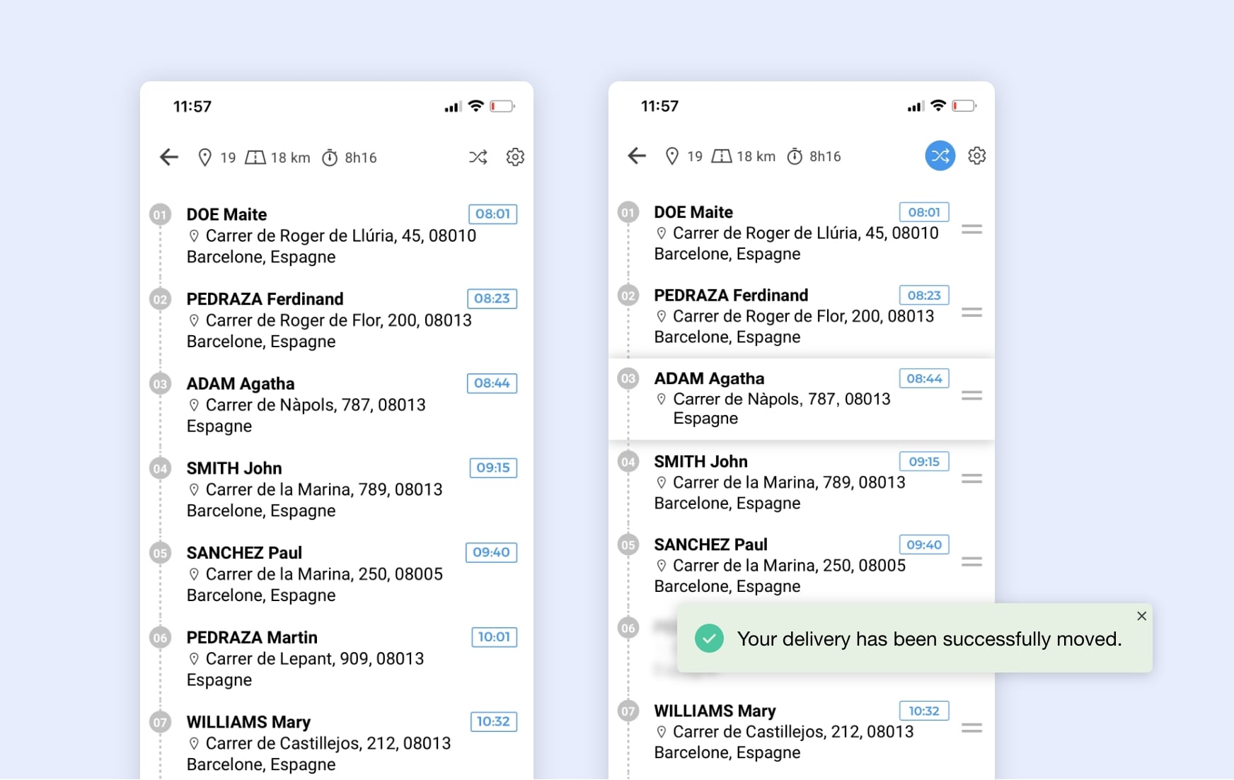 Once activated, this option is available to all drivers in your fleet, who can then reorganize a route (driver side):