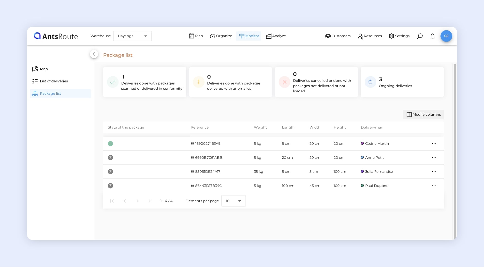 • Track your package deliveries in real time with AntsRoute