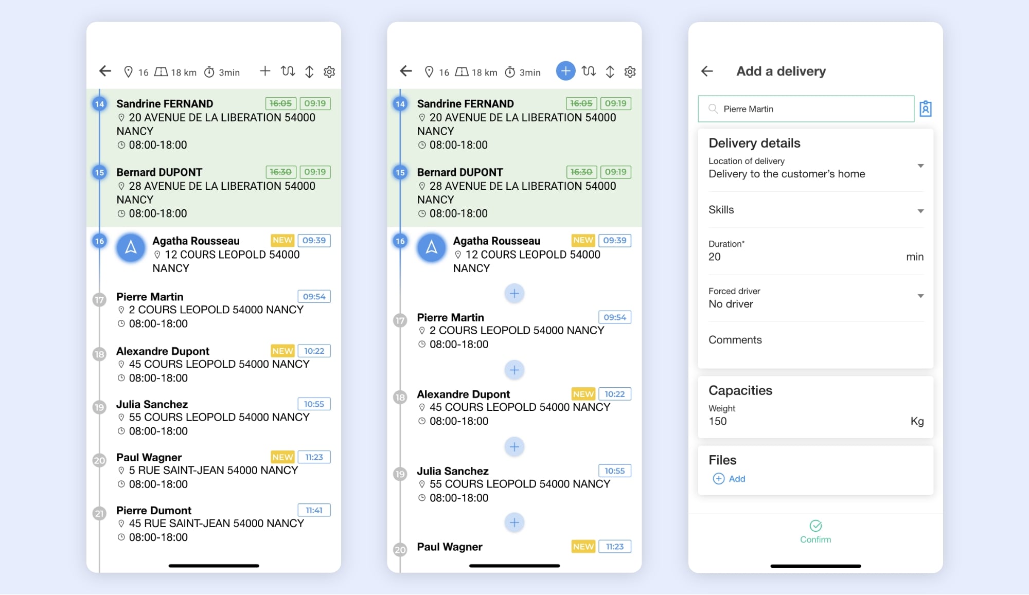 This feature allows them to insert an additional stop at the desired position within the list of already scheduled work orders.