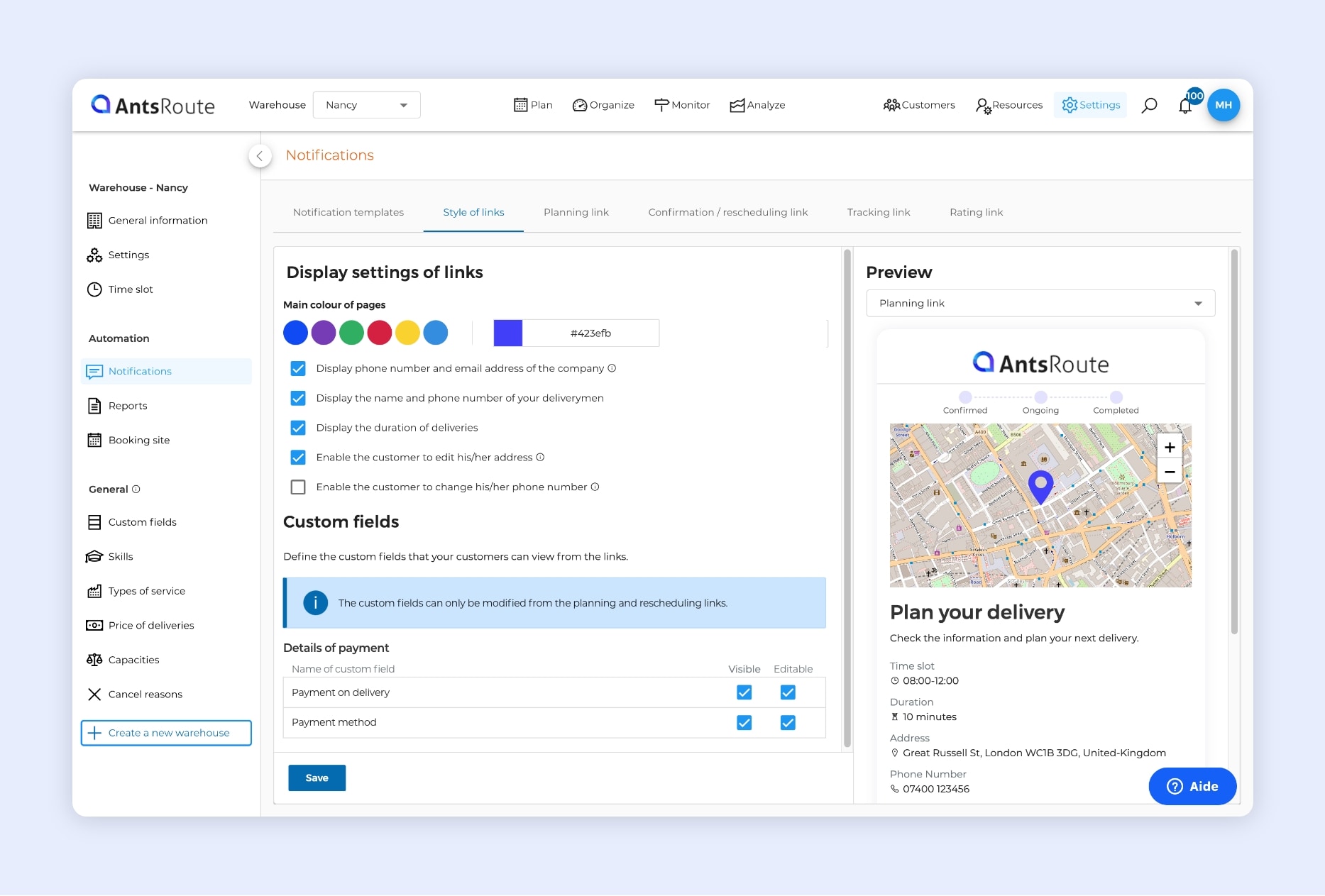 As a reminder, AntsRoute offers its users the possibility of keeping their customers updated by sending text messages or e-mails. These notifications, whether manual or automated, can include links: