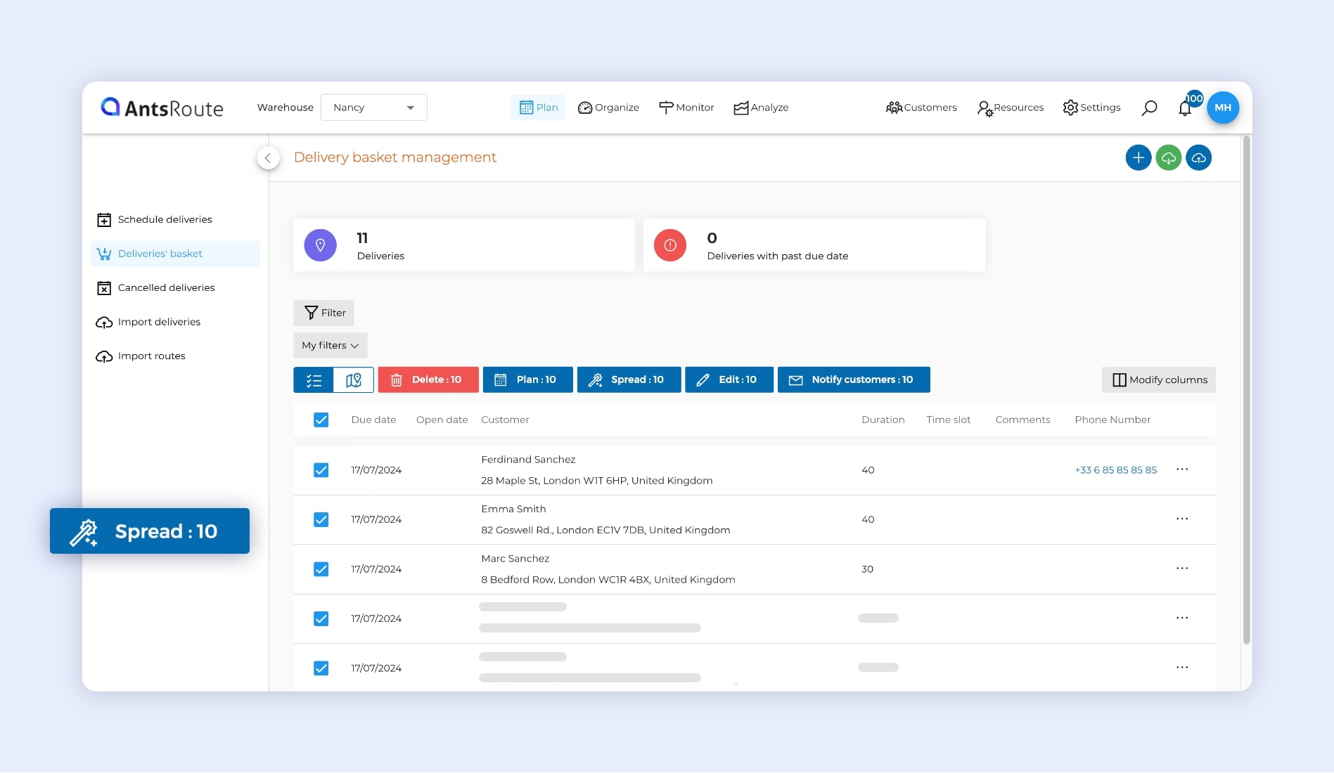 At the beginning of the year, the AntsRoute team was particularly pleased to introduce a function that allows you to smartly spread work orders or deliveries over a period of time. In simple terms, AntsRoute takes into account all your time and business constraints in order to spread the appointments from the “Deliveries’ basket” over a period. Tasks are smartly assigned to your drivers and routes are directly optimised.