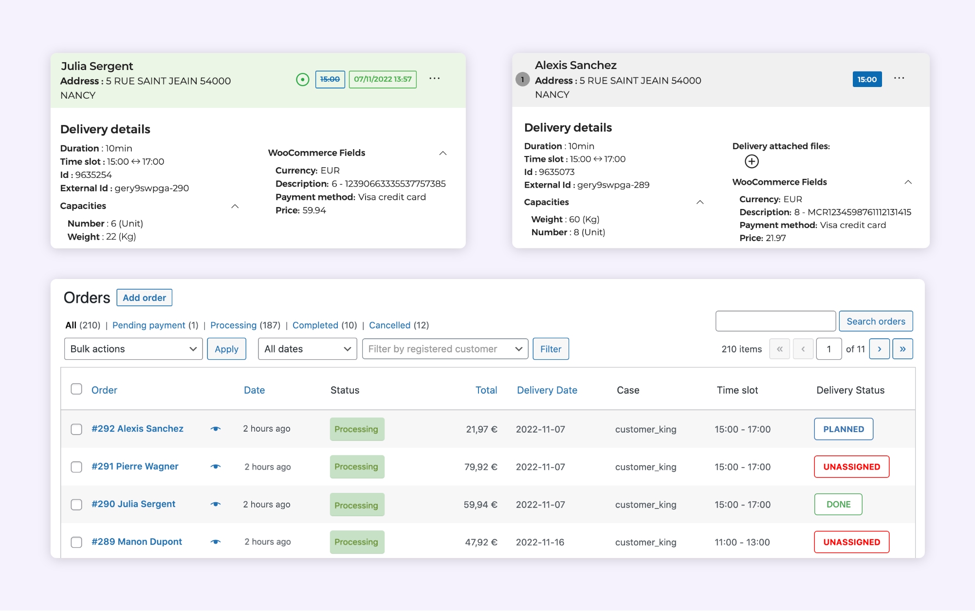 Thanks to this working mode of the plugin, you can send WooCommerce orders manually or automatically to AntsRoute. However, your customers do not have the possibility to choose the delivery date and time slot.
