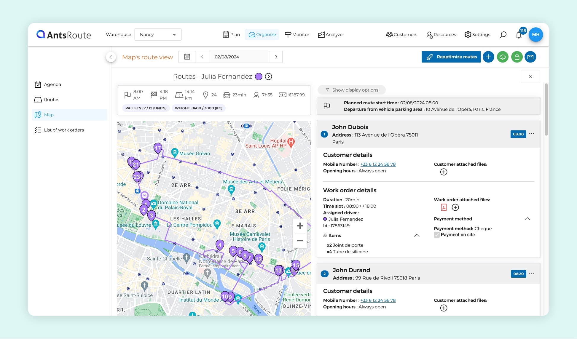 - For some companies, the customer is given the day or time slot without the exact time of the appointment. If you operate in this way, you can import your appointments in bulk into our software, via an Excel file or a third-party application. The solution is then very useful for optimizing the routes and schedules of each field worker, while respecting the time slots agreed upon.