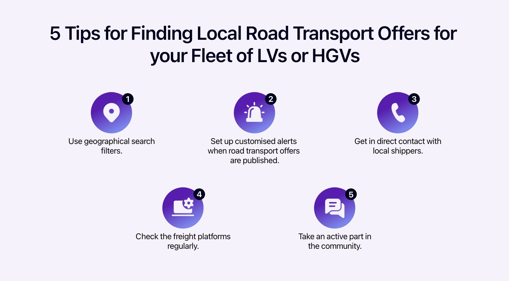 To find local road transport offers for your fleet of light commercial vehicles or heavy goods vehicles, here are 5 simple tips:
