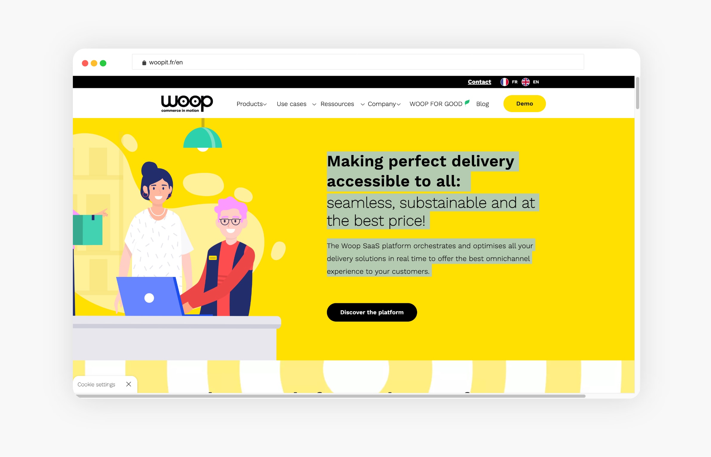 It promises its customers important savings on transport costs, especially thanks to algorithms that assign each order to the most competitive carrier. Woop also includes a tool to get customer reviews.