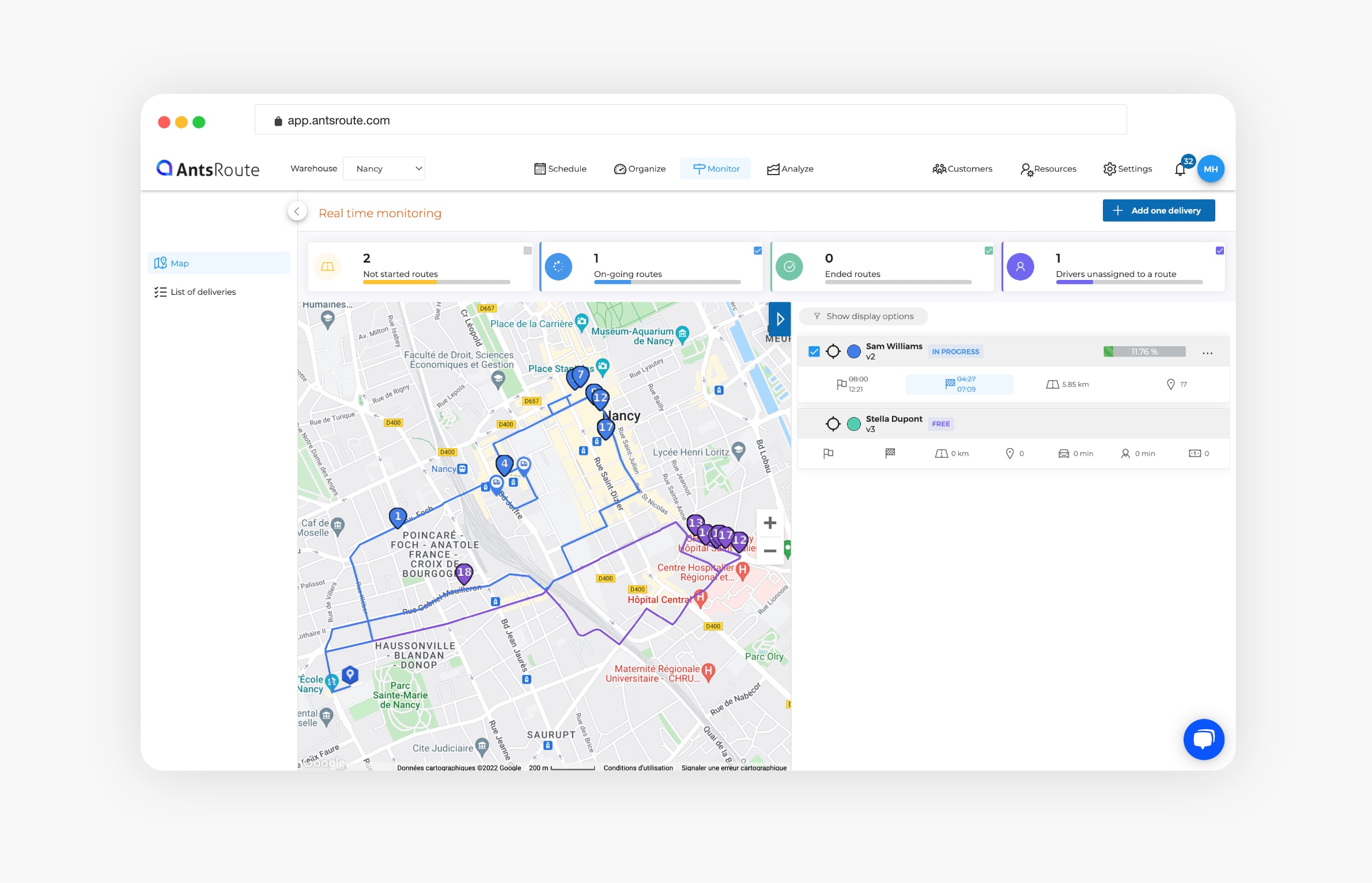 Our tool, which also belongs to the transport software category, aims to optimise routes and scheduling of deliveries. The AntsRoute application also integrates real-time geolocation, as well as efficient notification systems to improve the customer experience and significantly reduce absences on the first visit.