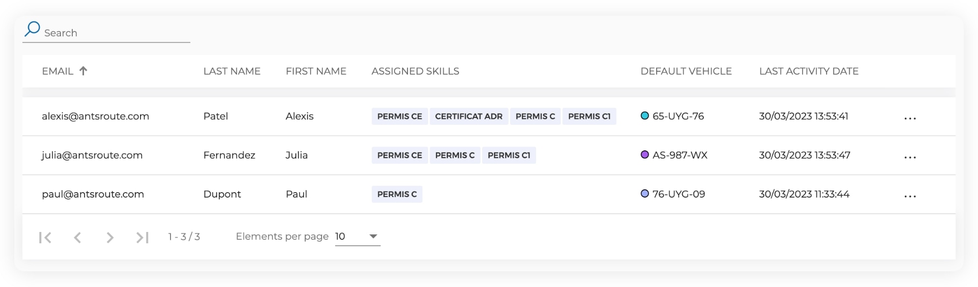 The management of skills in AntsRoute.
