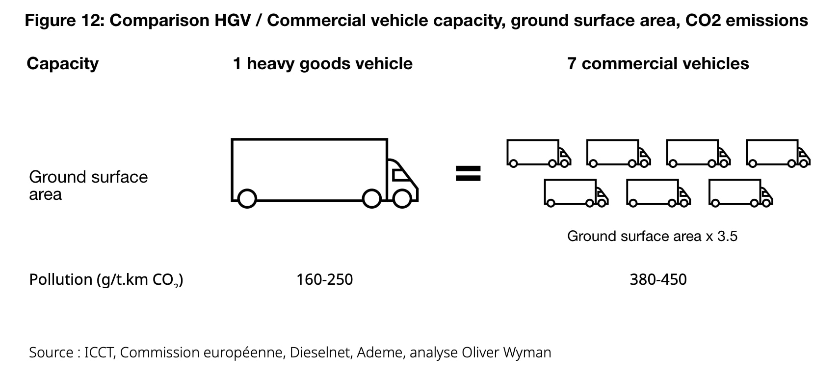 Comparison of HGV / LCV capacity, ground surface area, CO2 emissions by Olivier Wyman.