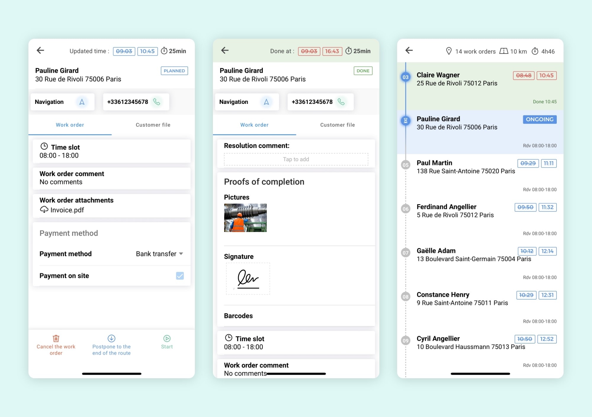 As soon as the team leader has validated the alternative option, the technicians and the customer are notified in real time by e-mail or SMS. It ensures an automated end-to-end communication.